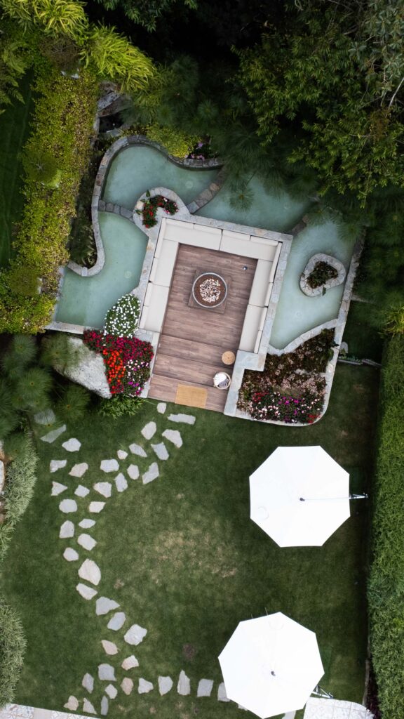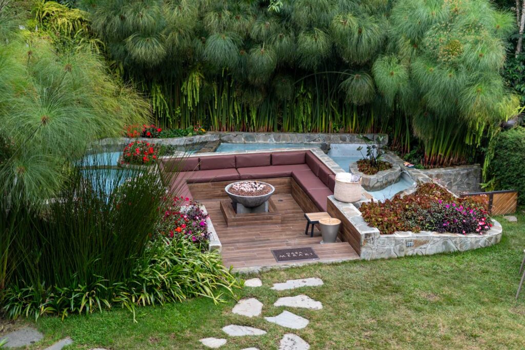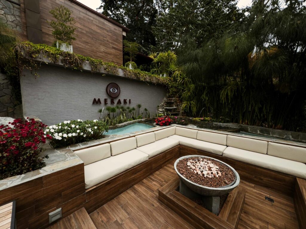 La armonía del entorno se extiende al Espejo de Agua, llamado ´Rincón Meraki´ un espacio mágico con fogata, fuente y cómodos muebles perfectos para las noches de descanso bajo las estrellas. Con capacidad de hasta 20 personas. Adicionalmente se puede ubicar una tarima en este espacio para los eventos.